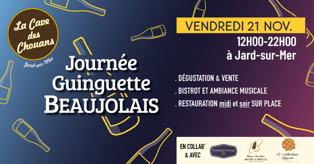 "Journée Guinguette Beaujolais" à Jard-sur-Mer Cette année - nouvelle Formule avec un évènement journée complète, restauration sur place midi et soir ! Victime de son succès en 2024, nous renouvelons la Guinguette